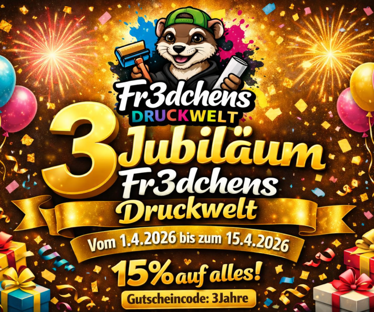 Bei Fr3dchens Druckwelt stehe ich Ihnen jederzeit zur Verfügung. Egal, ob Sie Fragen zu unseren 3D-Druckdienstleistungen haben oder ein individuelles Projekt besprechen möchten, zögern Sie nicht, uns zu kontaktieren. Sie erreichen uns telefonisch unter 017777777. Ich freue mich darauf, Ihnen bei Ihrem nächsten Druckvorhaben zu helfen!